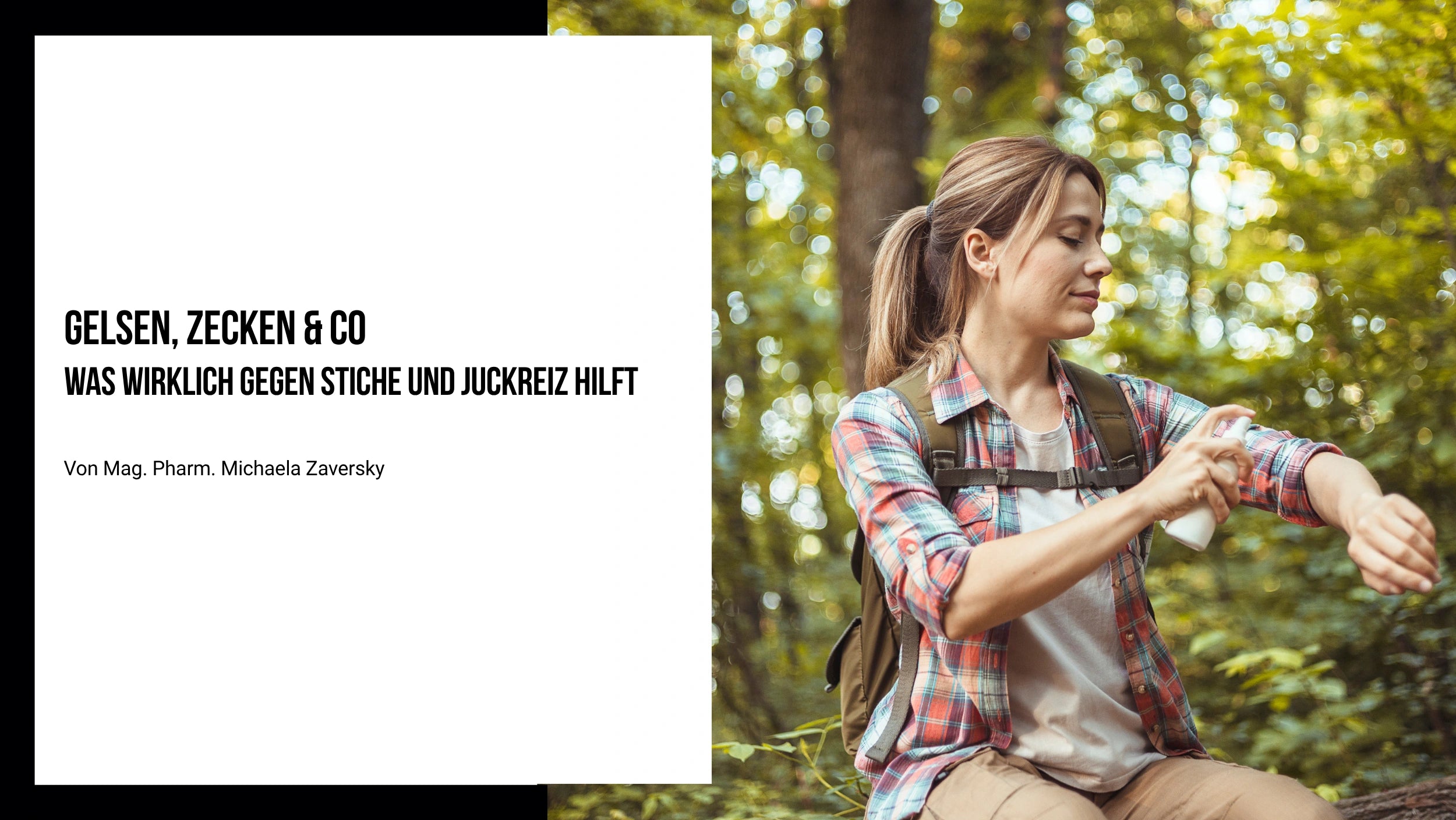 Alle Jahre wieder … kommt nicht nur das Christkind. Nein - auch die Gelsen, Mücken und Zecken machen sich bereit für ihren großen Auftritt. Kaum wird's draußen warm, summt, sticht und beißt es überall. Du sitzt draußen, genießt einen Abend im Garten - und plötzlich: Sssssss. Noch bevor du reagieren kannst, hast du den ersten Stich am Bein. Minuten später Juckreiz, Quaddeln und die Frage: