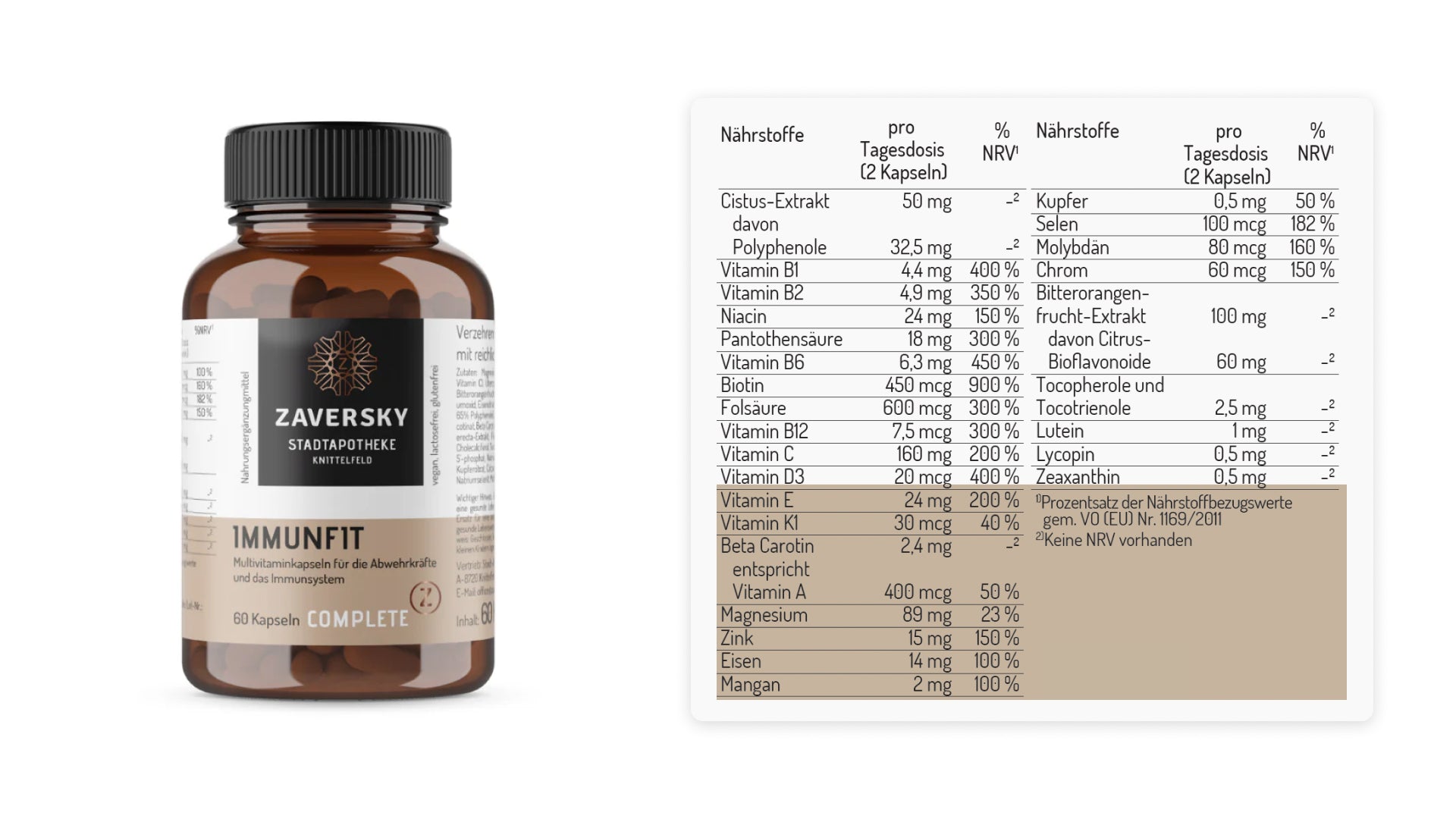 Wichtiger Hinweis: Eine abwechslungsreiche Ernährung sowie eine gesunde Lebensweise sind wichtig. Nahrungsergänzungsmittel sind kein Ersatz für eine ausgewogene und abwechslungsreiche Ernährung sowie eine gesunde Lebensweise. Die empfohlene Tagesdosis nicht überschreiten. Lagerhinweis: Geschlossen, kühl, trocken und lichtgeschützt ausserhalb der Reichweite von Kindern lagern.