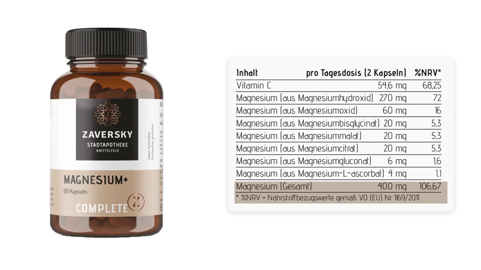 • 7 Magnesiumverbindungen - ideal abgestimmt und kombiniert
