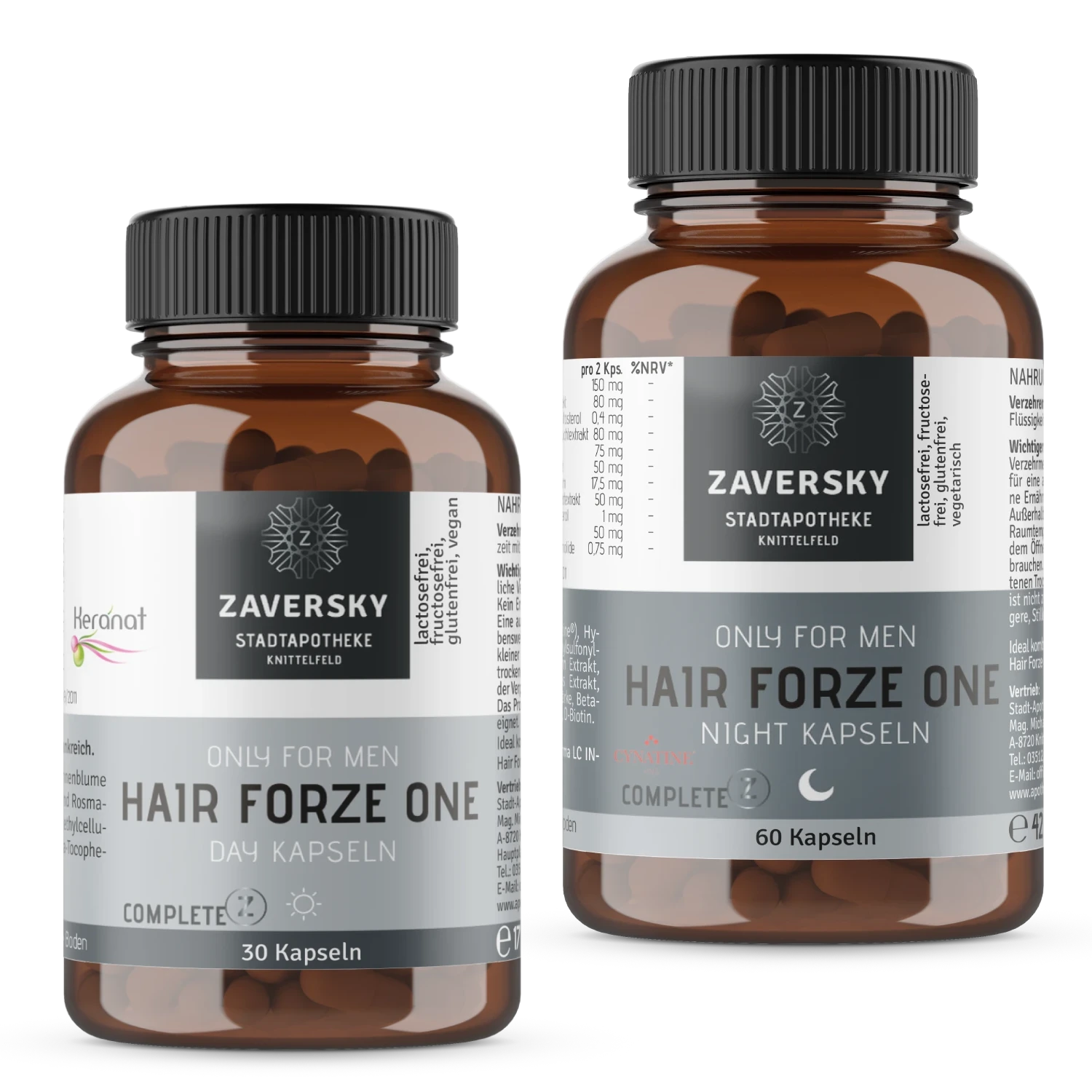 ZAVERSKY Hair ForZe One Night kombiniert strukturrelevante Nährstoffe, Vitamine, Mineralstoffe und den wissenschaftlich untersuchten Markenrohstoff Cynatine®.